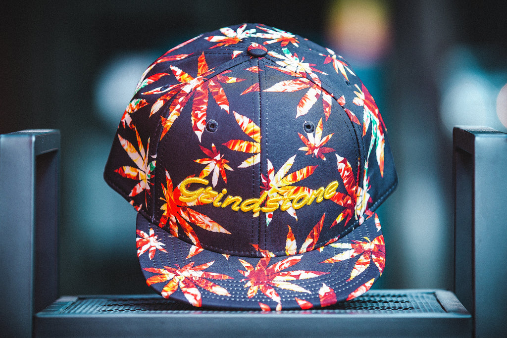 100% cotton snapback with Autumn colored cannabis leaf patterns