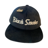 The Velvet "Black Smoke" cap represents "The Black Smoke Podcast". The feel is soft and wonderful and the script is raised chainstitch embroidery. Such intricate work is worth being worn as a crown.