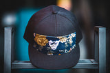This is a striking black twill cap with a band of beautiful printed floral material across the crown of it on which the 3-D Grindstone logo is embroidered. You can't miss with this one.