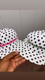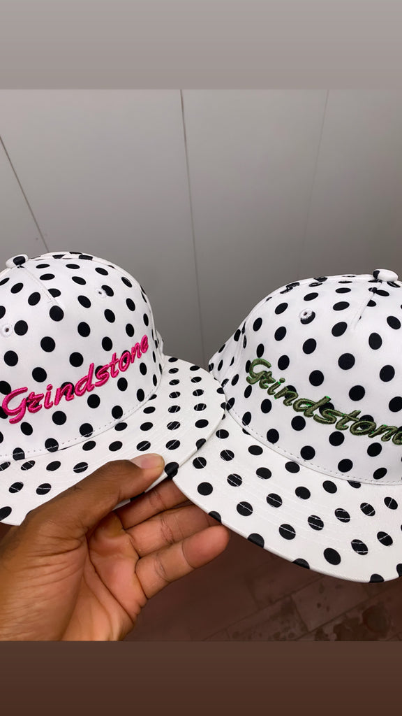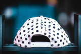 White Polka Dot adjustable snapback cap w/ green 3-D script