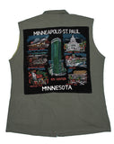It has custom embroidered and reflective Grindstone patches as well as a one of a kind vintage velvet military souvenir backing from Minneapolis-St.Paul. This is the ONLY ONE of its kind!