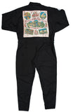 The left-chest patch is a felt & fabric handmade piece from Ghana. The leg patch is a custom made reflective patch that commands immediate attention. This is the only suit of its kind on which the back of this garment has a very unique vintage full-satin placket that was saved as a souvenir from military duty from Richmond, Virginia years ago. Each one is beautifully different.