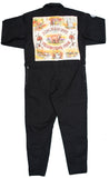 The left-chest patch is a felt & fabric handmade piece from Ghana. The leg patch is a custom made reflective patch that commands immediate attention. This is the only suit of its kind on which the back of this garment has a very unique vintage full-satin placket that was saved as a souvenir from military duty from Yellowstone years ago. Each one is beautifully different.