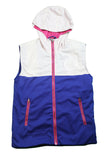 This sleeveless nylon full-zip hoodie with zip pockets and tone-on-tone embroidery is ideal for brisk weather. The pops of color make it the perfect garment with or without a layer worn beneath it.