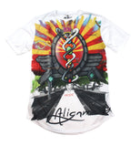 - The "Alignment" design is one with radiant healing elements expressed in an artistic collaboration between Grindstone and graffiti artist, Jah One. The various chakras (energy centers) are listed in anatomical order and labeled so the owner of this shirt can become aware of their own power centers (chakras).
