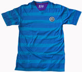 Mercerized Men's V-Neck Tee : Teal and Blue Stripe