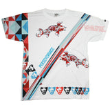 This 100% poly t-shirt holds vibrant color. The unique material also "wicks" moisture and heat away from your body as necessary.
