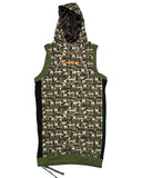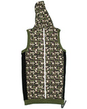 The Grindstone Camo Hoodie dress is the ideal piece for an active lifestyle. Made of a uniquely printed fleece camo fabric (95% cotton, 5% spandex), it is trimmed with drawstring at the bottom to adjust for the perfect fit. The durable drawstrings in the hood offer the benefits of being highly reflective while looking hyper-cutting edge. In addition, the back has a reflective strip that runs vertically the length of the garment.