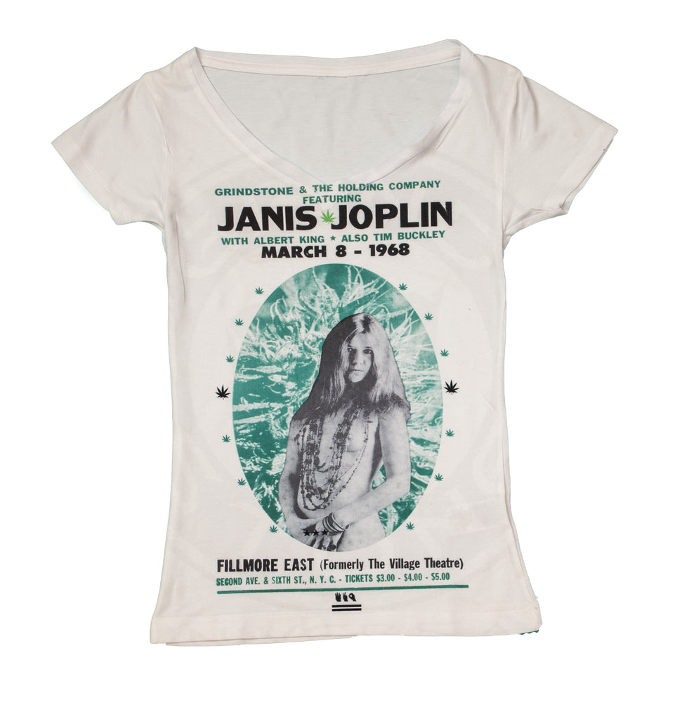 This shirt honors the 420/Cannabis culture as well as the ever-important Janis Joplin.