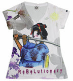 ReBeLutionary : Women's V-Neck Tee celebrate Asian culture in DC with cherry blossoms and stop Asian hate. China, Japan, India, Fiji, the Polynesian islands, and the rest of Asia are to be celebrated in Washington, DC