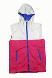 This sleeveless nylon full-zip hoodie with zip pockets and tone-on-tone embroidery is ideal for brisk weather. The pops of color make it the perfect garment with or without a layer worn beneath it.