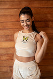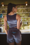 Our Women's Velvet Lounge Two-piece Short Set is a cozy set to lounge around the house in or go out and have fun in the sun. The Tiger Swallowtail embroidered butterfly is highly detailed from an original Grindstone hand drawing.