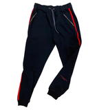 The pants are tapered (but not extra tight) and have the contrast stripe going down the side of the leg as well as contrast embroidery on the back of the lower left leg. The colorways are the ideal due to simplicity and pop.